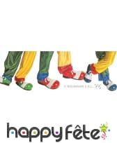 Vous en ferez rire plus d'un avec ces chaussures de clown bleues, rouges et vertes. Vous ne pourrez choisir ni le modèle ni la couleur lorsque vous passerez la commande. Les chaussures seront livrées comme présentées. Elles sont idéales pour un carnaval.