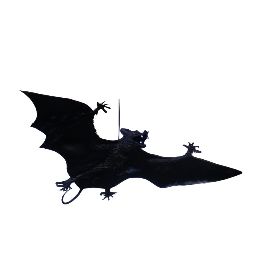 Chauve-souris en plastique de couleur noire. Cet accessoire mesure 23 centimètres. Parfaitement adaptée au thème d'Halloween, cet accessoire sera idéal comme item de décoration.