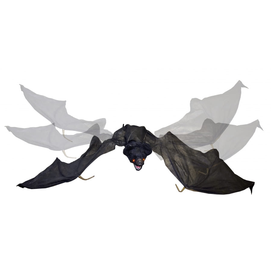 Passez un Halloween sinistre en compagnie de cette chauve-souris géante. Cet objet décoratif de couleur noire fait 153 x 40 cm de dimension. En plus, ce ne sera peut-être pas sa grandeur qui va épater vos amis ! Elle est de nature lumineuse, elle peut bouger la tête ainsi que battre des ailes. Mais la cerise sur le gâteau est indéniablement son cri lancinant qui glace les os ! A noter que cet article sensationnel est livré avec 3 piles.
