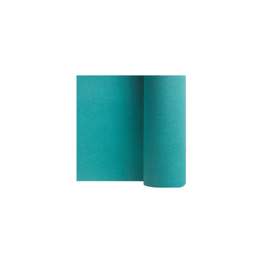 Chemin de table célisoft en rouleau de couleur bleu lagon. Cet accessoire mesure 30 centimètres de largeur sur une longueur de 24 mètres. Eclaircissez votre décoration de mariage ou d'anniversaire grâce à ce chemin de table.