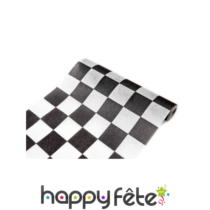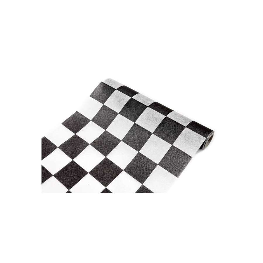 Apportez une touche d'originalité à votre déco sur le thème des sports de vitesse, avec le chemin de table damier noir blanc 5 m sur 27 cm.