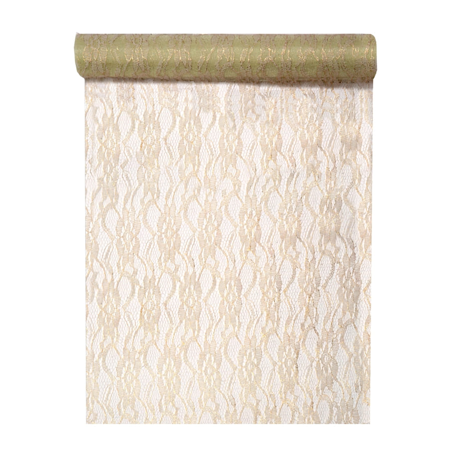 Pour avoir une touche d'originalité durant les événements ainsi que les fêtes à thème, nous vous proposons ce chemin de table en dentelle dorée, polyester.