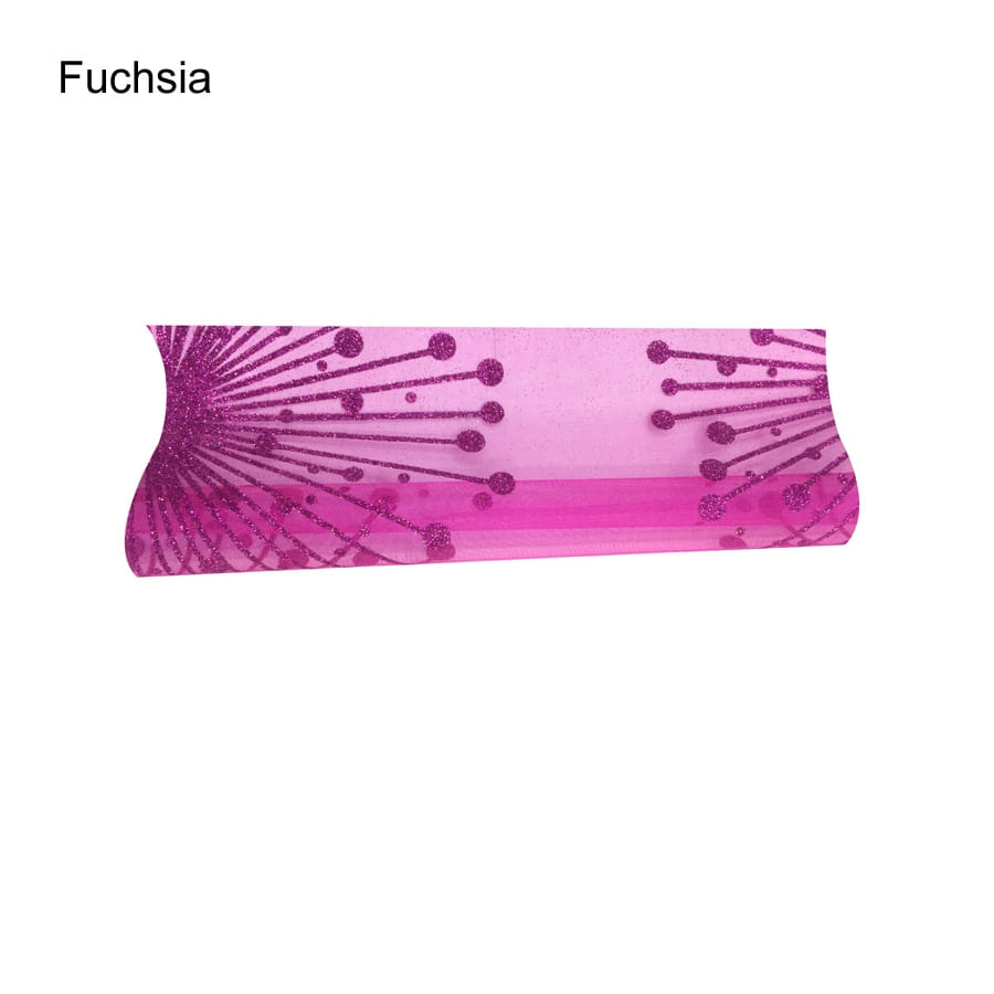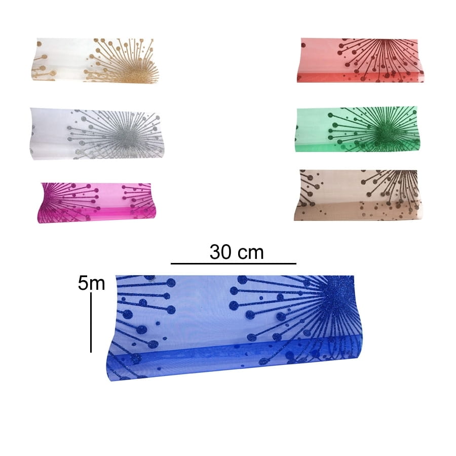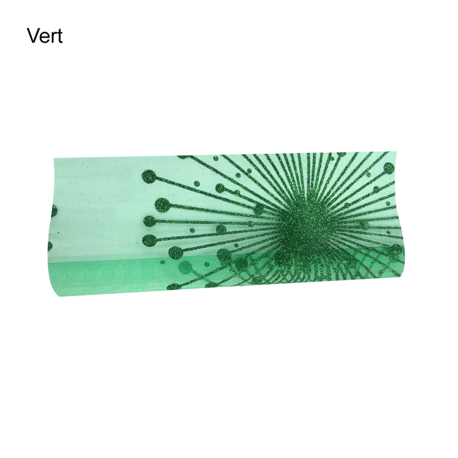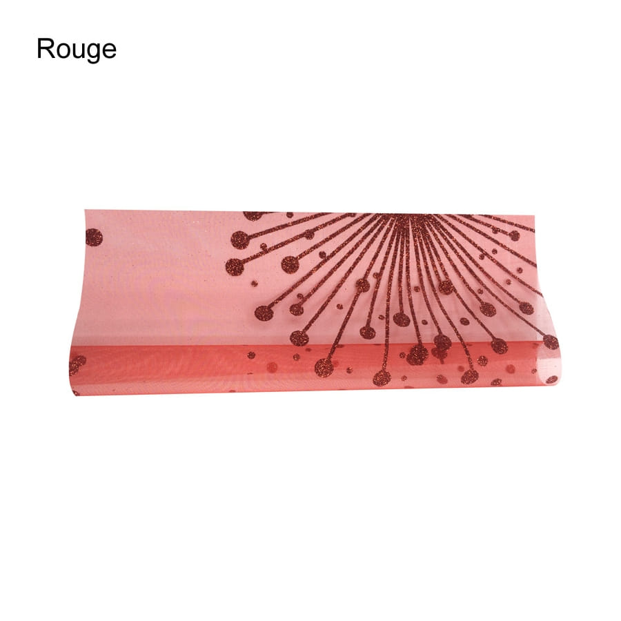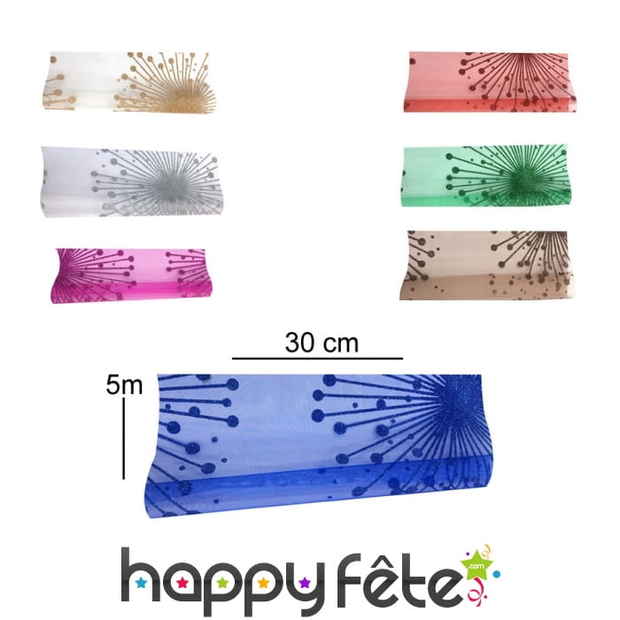 Personnalisez votre table en un clin d'oeil avec ce chemin de table feux d'artifice, organza ! Il a 30 cm de large et 5 m de long, fait en organza, 100% polyester. Cet article est disponible en argent, bleu, chocolat, fuchsia, or, rouge, vert et violet. Avec ces jolis motifs «feux d'artifice», cet article sera parfait pour la fête du Nouvel an.