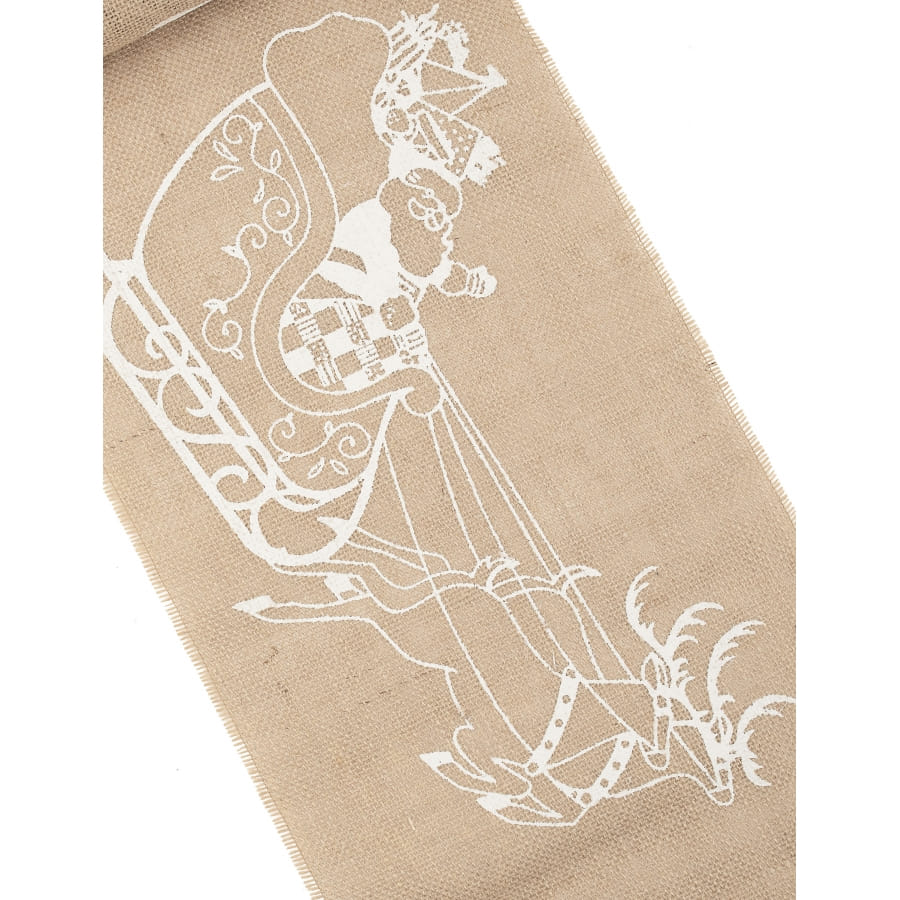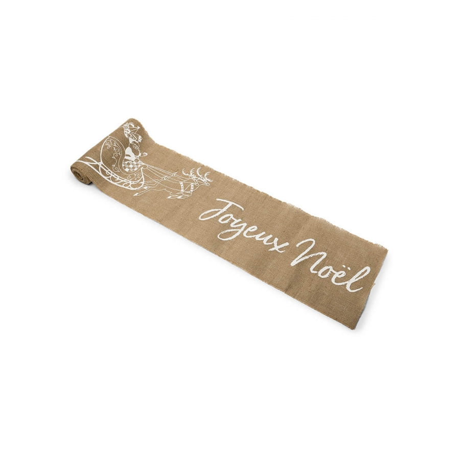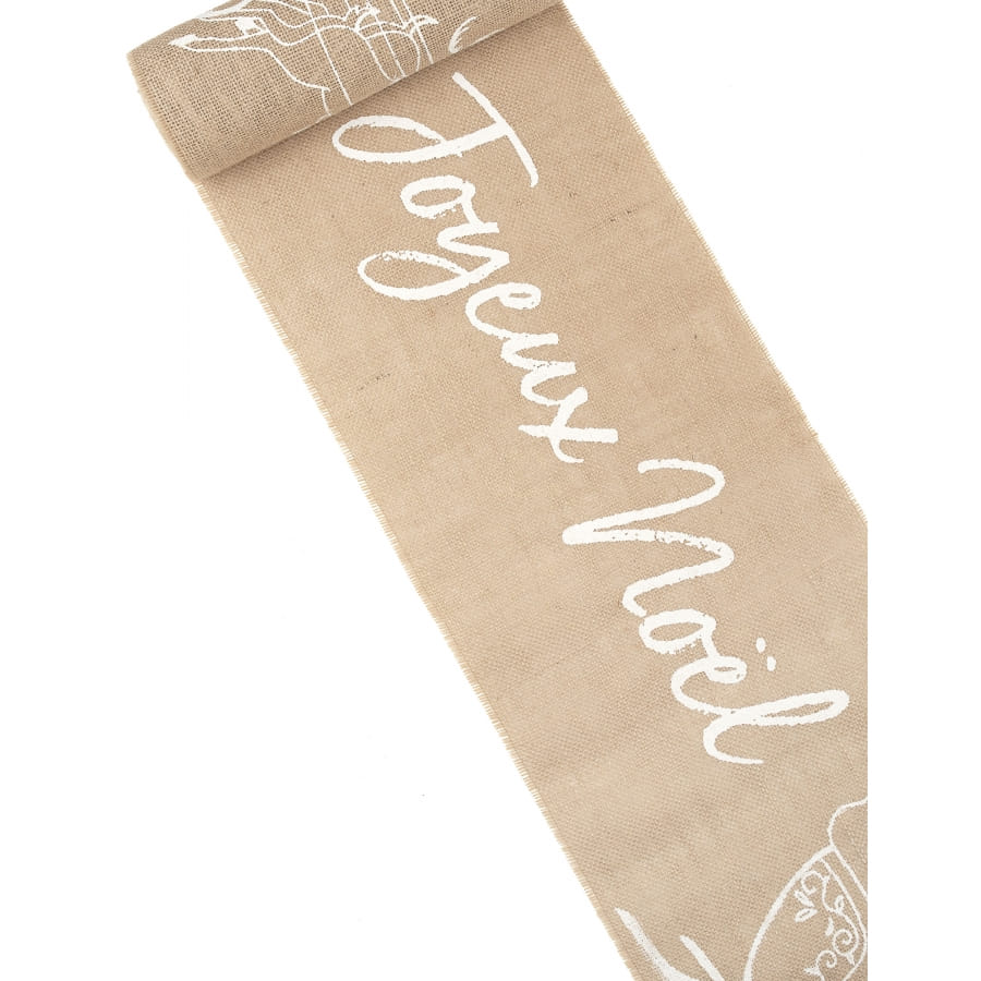 Agrémentez votre décoration de fin d'année grâce à ce Chemin de table Joyeux Noel en toile de jute, 5m.