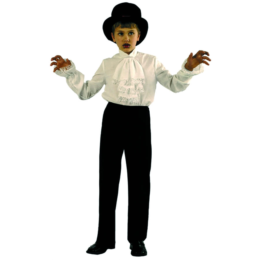 Cet accessoire de déguisement est idéal pour les fans de vampire. Il sera un vampire très classe dans cette chemise à jabot. Il pourra aussi le porter pour incarner le personnage d'un sorcier. La chemise manches longues à jabot de couleur blanc est proposé en taille 116 pour les enfants de 4 à 5ans.