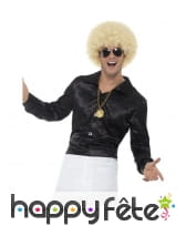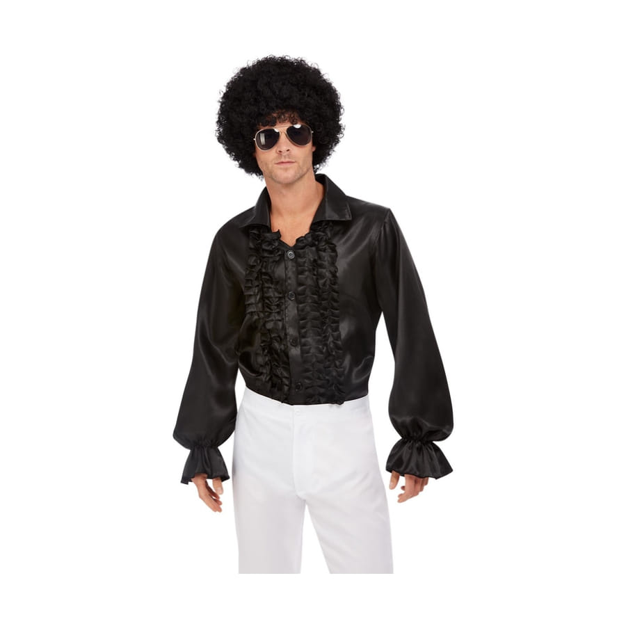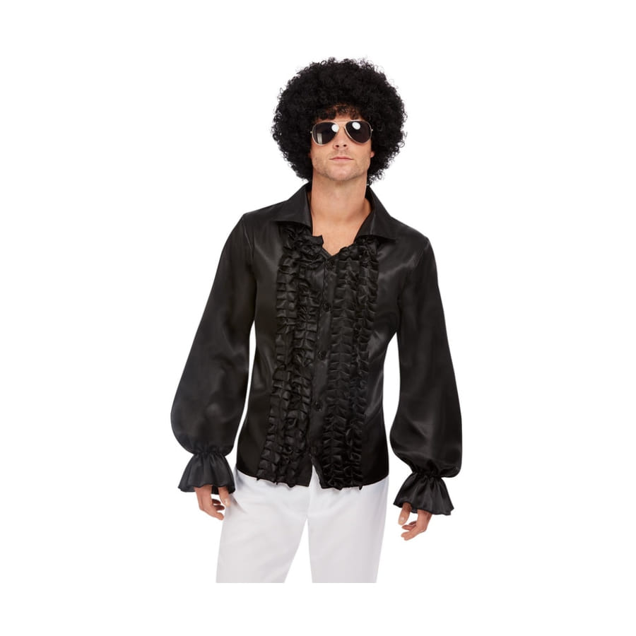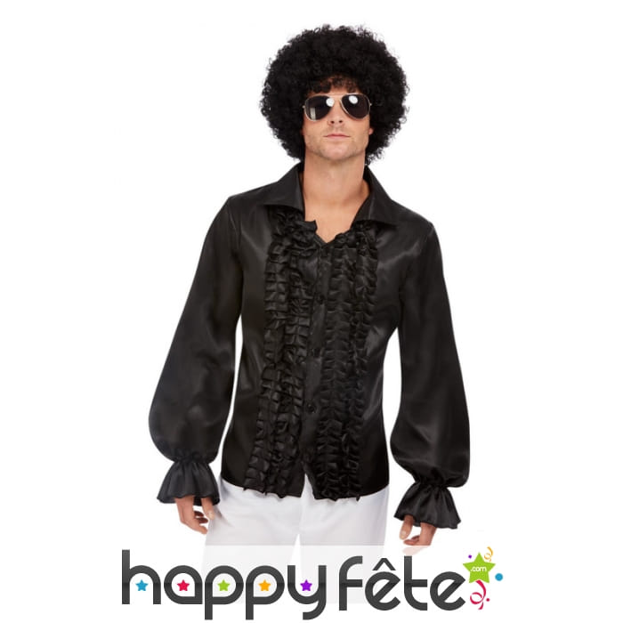 Bougez au rythme musical des années 70, et devenez le clou d'un spectacle sur le thème Disco, avec cette chemise à volants noire pour homme.