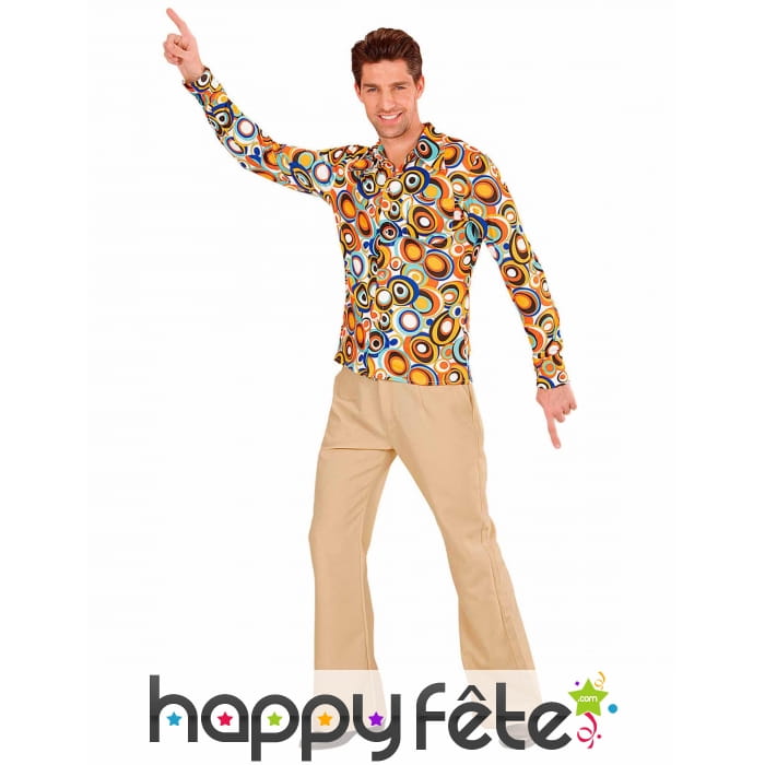 Nous vous invitons à découvrir notre chemise années 70 bulles colorées pour homme.