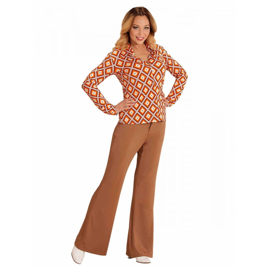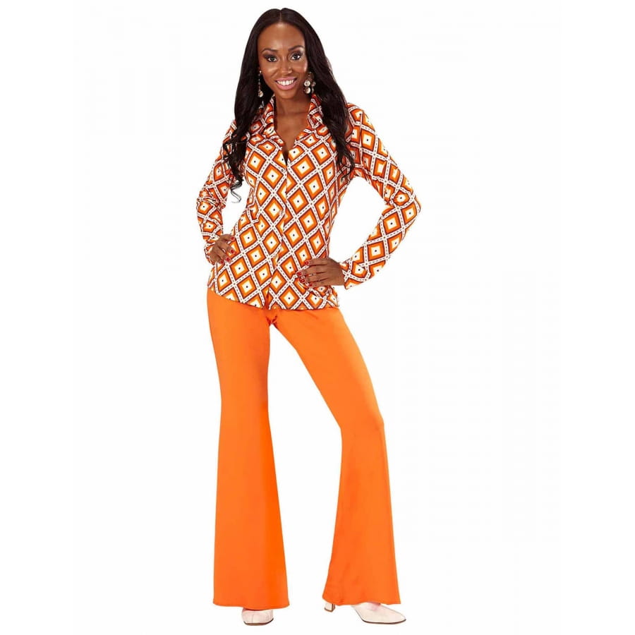 Nous vous présentons notre chemise années 70 orange imprimé losanges.
