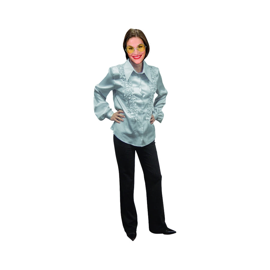 Vous ferez fureur dans cette chemise pour une soirée disco ou une soirée sur le thème des années 70, cet accessoire de déguisement apportera la touche qu'il faut a votre déguisement . Disponible en taille: 38/40 et 42/44. Cette chemise super ruches manche longue est argentée.