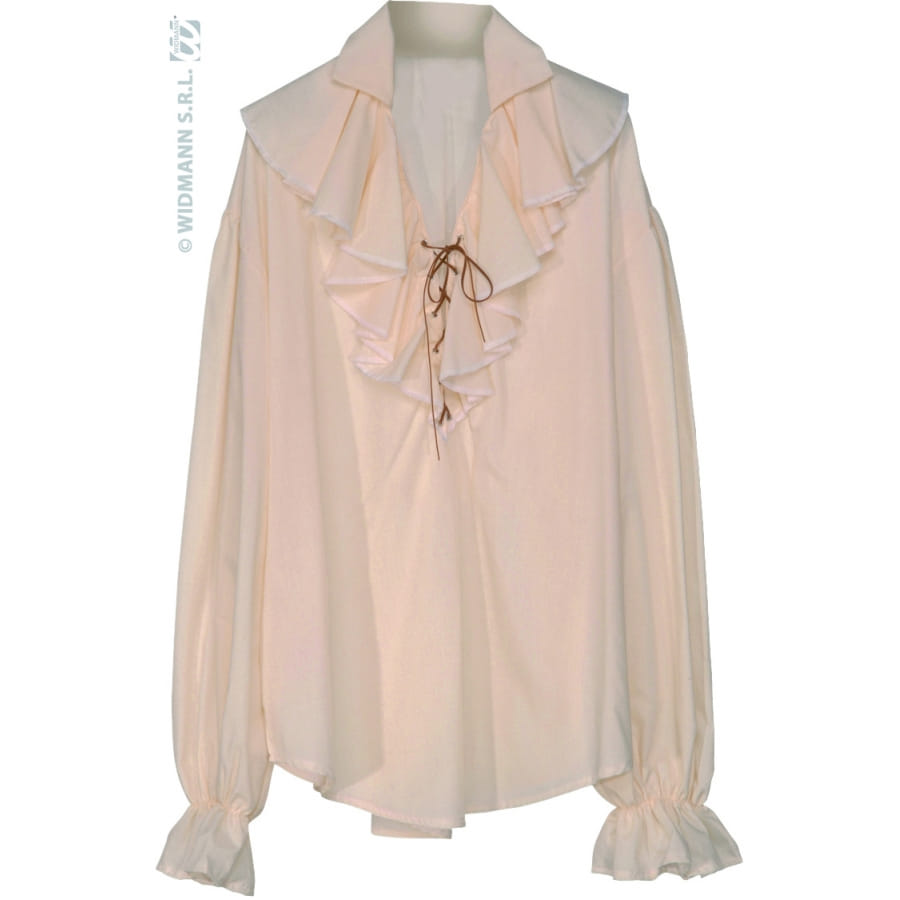 Jouez au pirate avec cette belle chemise d'époque ou encore pourquoi ne pas incarner un marquis ou un roi durant le carnaval dans cet accessoire de déguisement idéal pour vos soirées à thème Historique. Cette chemise d'époque est beige avec un col volant et un petit lacet noir sur le devant.