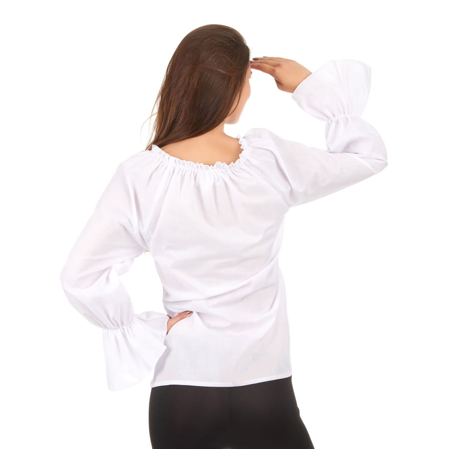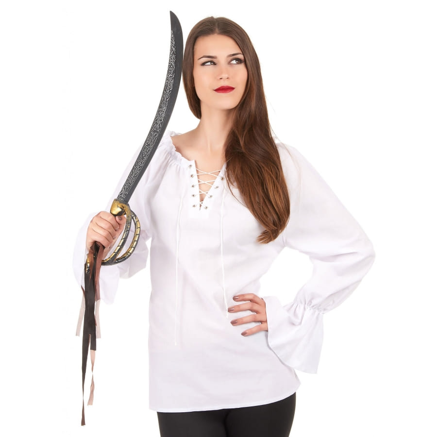 La chemise de piratesse blanche à manches longues est destinée aux femmes.