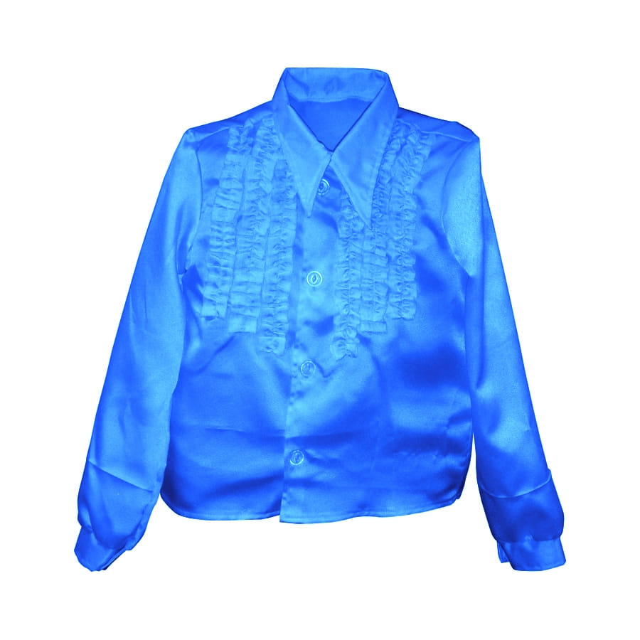 Belle chemise à super ruches, idéale pour les fêtes déguisées ainsi que le carnaval. Pour incarner le parfait danseur dans un spectacle de danse c'est l'accessoire idéal. Cette chemise manches longues à super ruches est de couleur bleu.