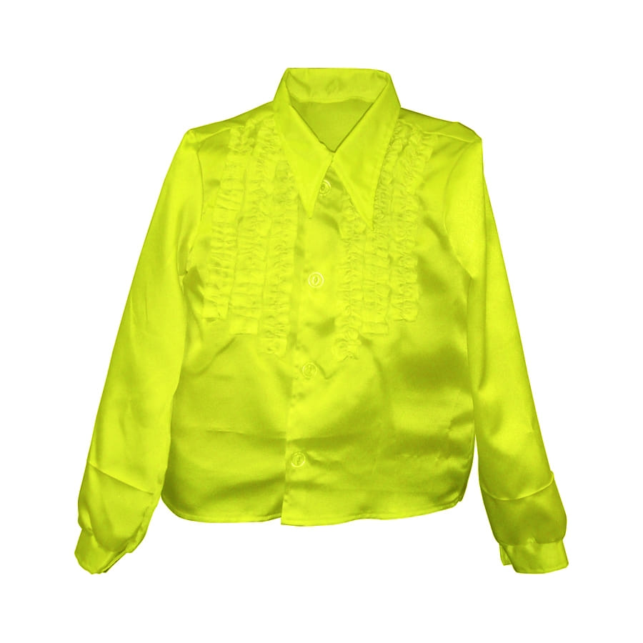 Cette belle chemise il pourra le porter a plusieurs occasion comme une fête des années 70, disco ou paillettes. Il pourra la porter pour un spectacle de danse aussi, cette chemise manches longues avec des ruches sur le devant de couleur jaune.