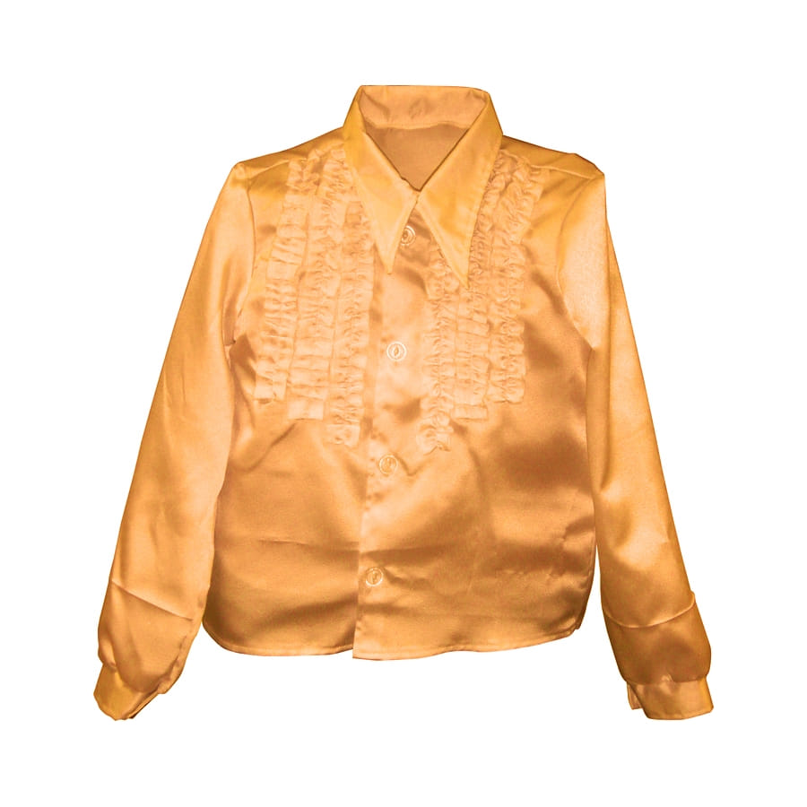 Cette belle chemise couleur or pour enfant est idéale pour les fêtes déguisé ou durant le carnaval. Cet accessoire de déguisement est parfait pour un gouter d'anniversaire ou durant un spectacle. De très bonne qualité, cette chemise manches longues avec ruches sur le devant de couleur or.