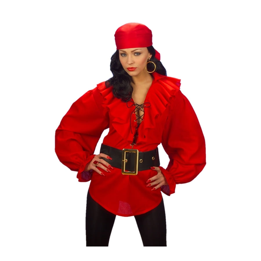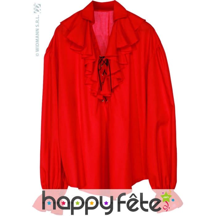 Les autres n'auront qu'a bien se tenir si vous vous déguisez madame en pirate ou messieurs. Vous pourrez vous métamorphoser aussi en serveuse de saloon pour le carnaval dans cette belle chemise d'époque de pirates en taille M, le costume est rouge avec un col volant et un petit lacet noir.