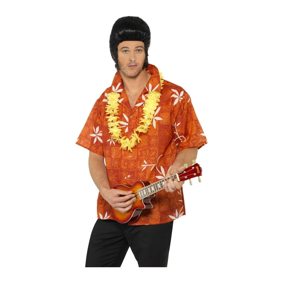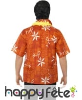 Déguisement hawaïen, pour homme, composé d'une chemise rouge avec fleurs blanches et d'un collier en fleurs jaunes. La chemise est disponible en taille S, M ou L et fera de vous un hawaïen cool.