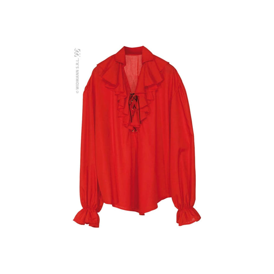 Chemise de pirate de couleur rouge, pour homme. Cet accessoire est disponible en taille médium large. Cette chemise peut également vous servir à compléter un déguisement de mousquetaire!