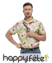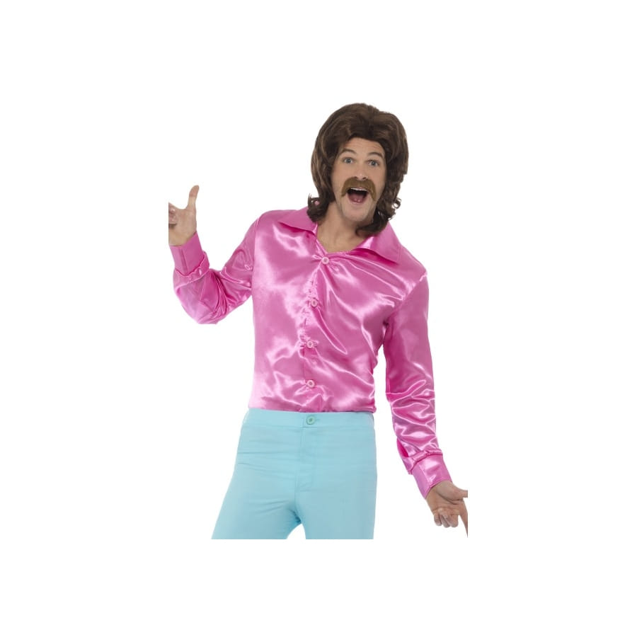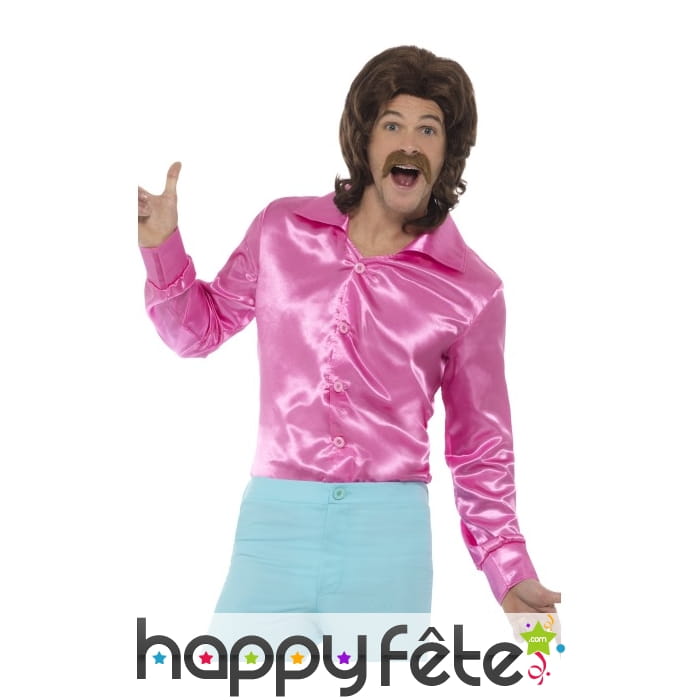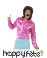 Profitez de cette chemise rose années 60 pour homme à l'occasion du carnaval. Même si le rose est peu commun pour la gent masculine, cette chemise vous permettra de briller dans un costume des années 50-60, en plein dans le thème hippie ou disco. Rajoutez-y un pantalon pattes d'éléphant, une perruque et une moustache et le tour sera joué ! Tout ceci est à retrouver sur Happyfete.