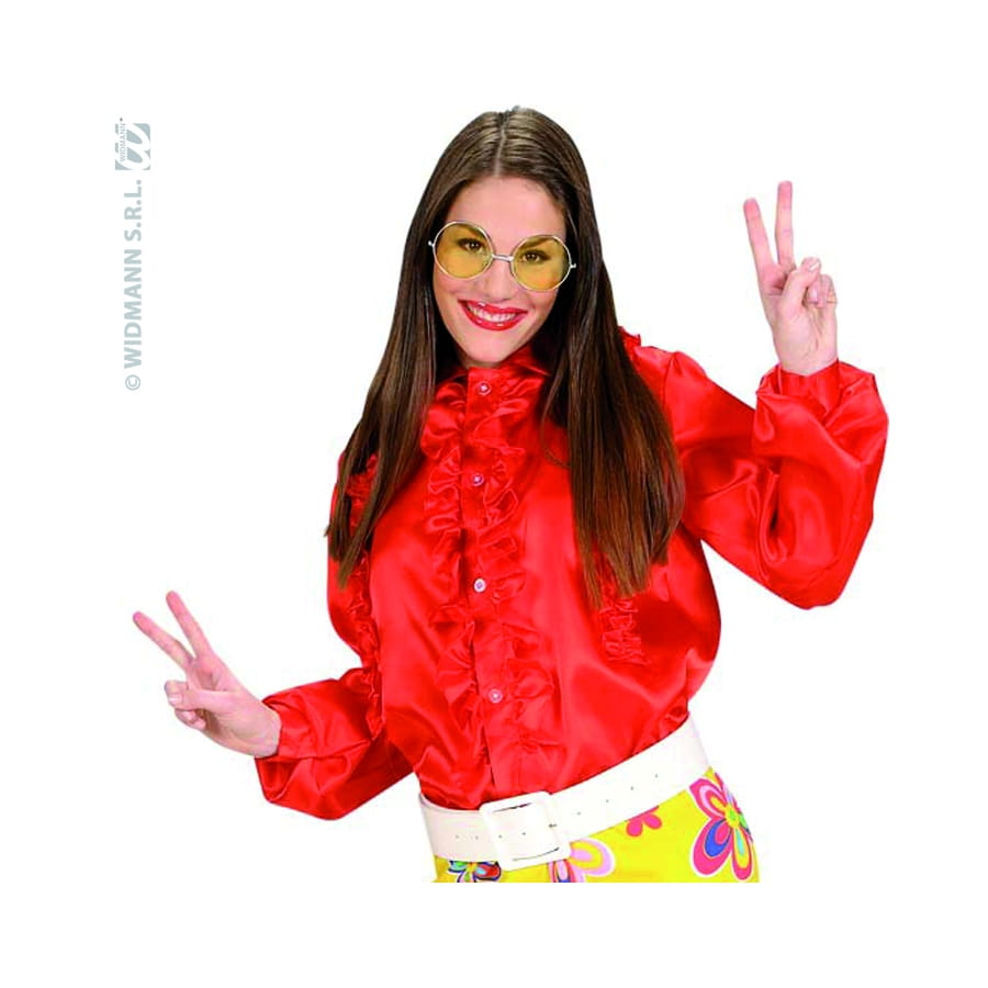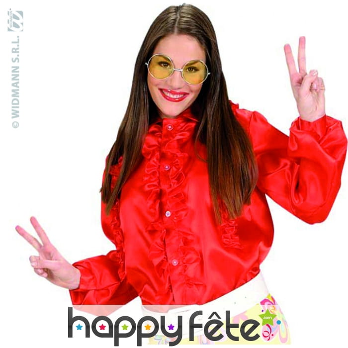 Laissez-vous tenter par cette chemise à froufrous de couleur rouge. Cet accessoire est idéal pour se déguiser en personnage du film "Grease" ou en danseuse disco des années 70-80.