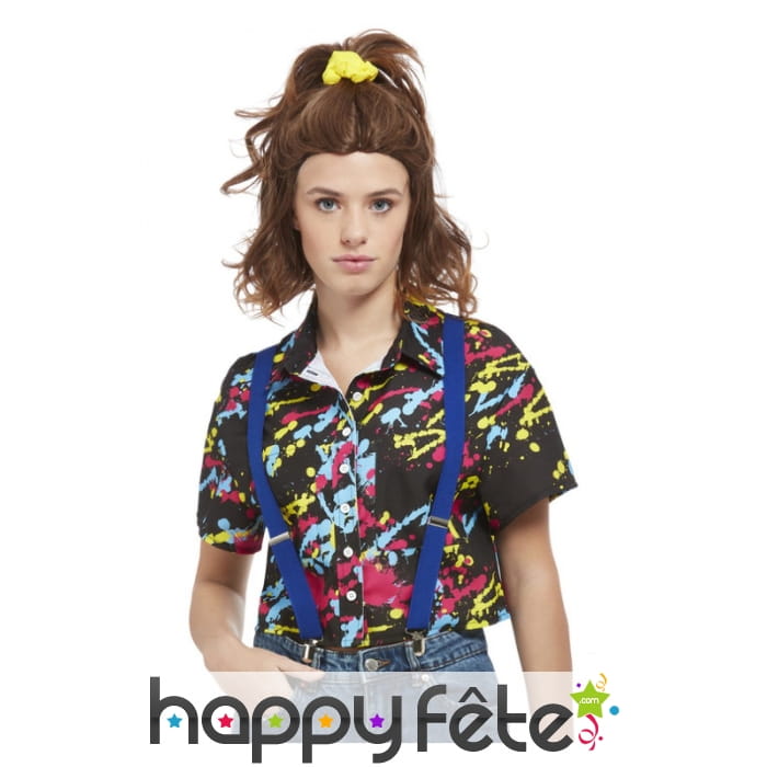 Optez pour un look flashy et mettez-en plein les yeux lors d'une soirée disco, avec cette chemise tâches de peinture courtes manches, femme.