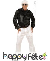 La chemise s'enfile par une fermeture centrale composée d'une bande de boutons blancs.
