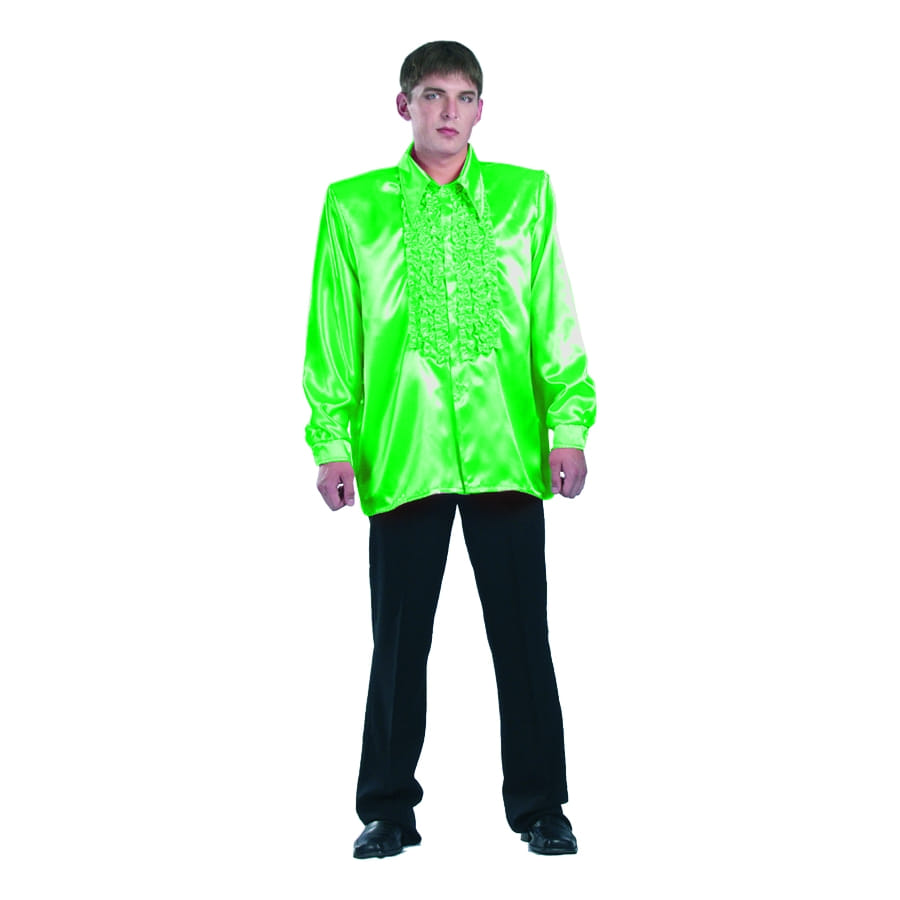 Une magnifique chemise à ruche pour le carnaval pourquoi pas se déguiser en danseur pour une soirée années 70, disco et paillettes. Disponible en tailles: 50/52 et 54/56. Vous pourrez incarner un danseur, une chemise de couleur vert avec ruches.