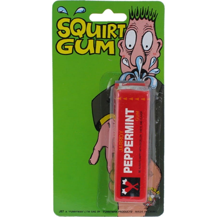 Accessoire de farce et attrape constitué d'un chewing-gum lanceur d'eau. Remplisez la fiole d'eau et dès que quelqu'un vous demandera un chewing-gum, arrosez-le!