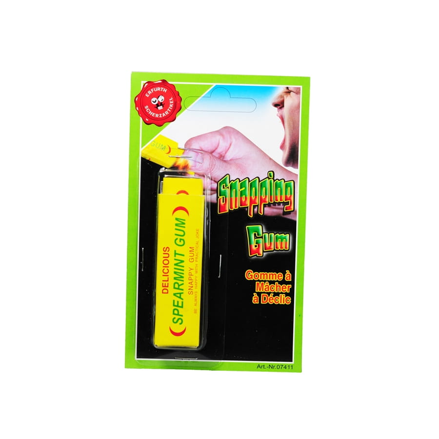 Offrez ce chewing-gum tape doigt à vos amis et voyez leur étonnement lorsque ce chewing-gum attrapera leurs doigts avec une petite pince dès qu'ils le prendront. Ce chewing-gum, exactement comme les vrais, de couleur jaune avec l'inscription « Delicious Spearmint gum » a été fait pour les petits farceurs.