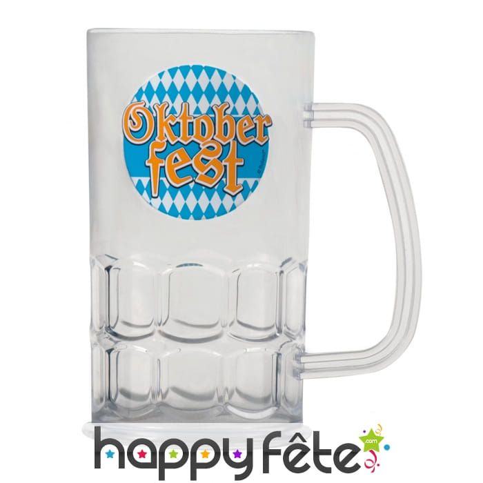 Cette chope de bière est fabriquée en plastique transparent qui simule à merveille du verre.