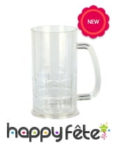 Cette belle chope de bière est transparente et capable de contenir jusqu'à 0,4 L de bière.