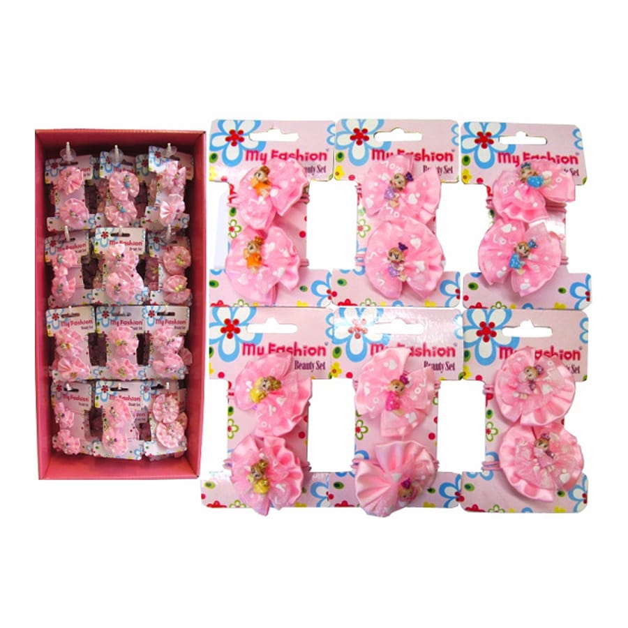 Que des accessoires girly pour les ravissantes petites filles ! Découvrez des chouchous rose pour les cheveux. Il s'agit de jolis chouchous de couleur rose, chacune décorée par une petite poupée placée sur le noeud au centre. Ce modèle se vend par deux unités. La couleur du petit personnage décoratif peut varier. Vous ne pourrez pas la choisir à la commande car elle dépendra de la disponibilité en stock.