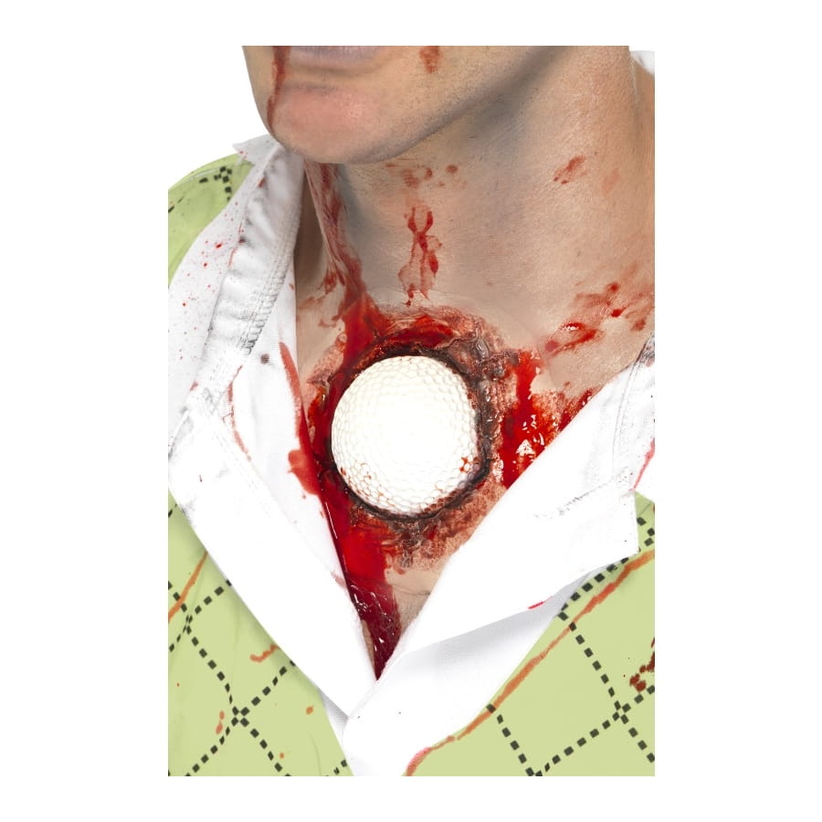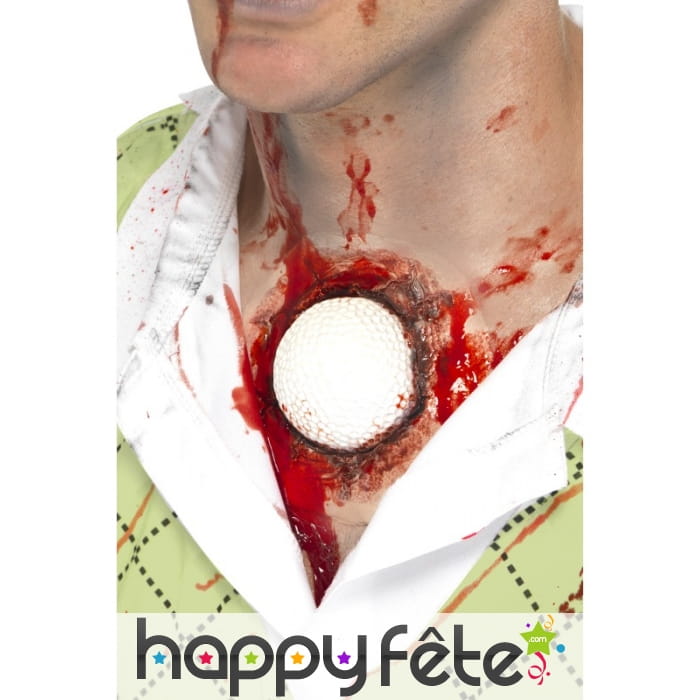 Cicatrice en forme de balle de golf ensanglantée. Placez-la dans un endroit bien visible pour écoeurer vos amis en leur faisant croire qu'une balle de golf s'est enterrée dans votre peau.