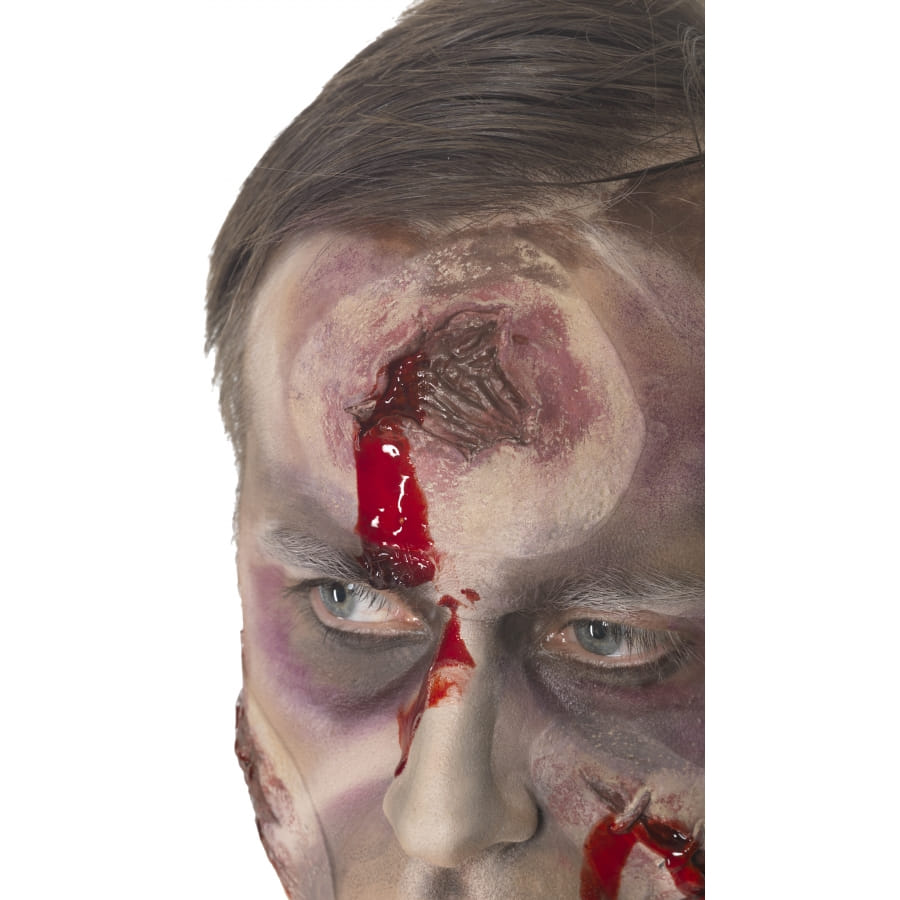 Pour incarner un zombie ou même un monstre cette cicatrice vous aider. Vous pourrez la coller sur votre front. Cela donnera l'effet d'un trou et du sang qui en découle. Vous pourrez vous en servir de cet accessoire pour Halloween ou encore une fête sous le signe de l'horreur.