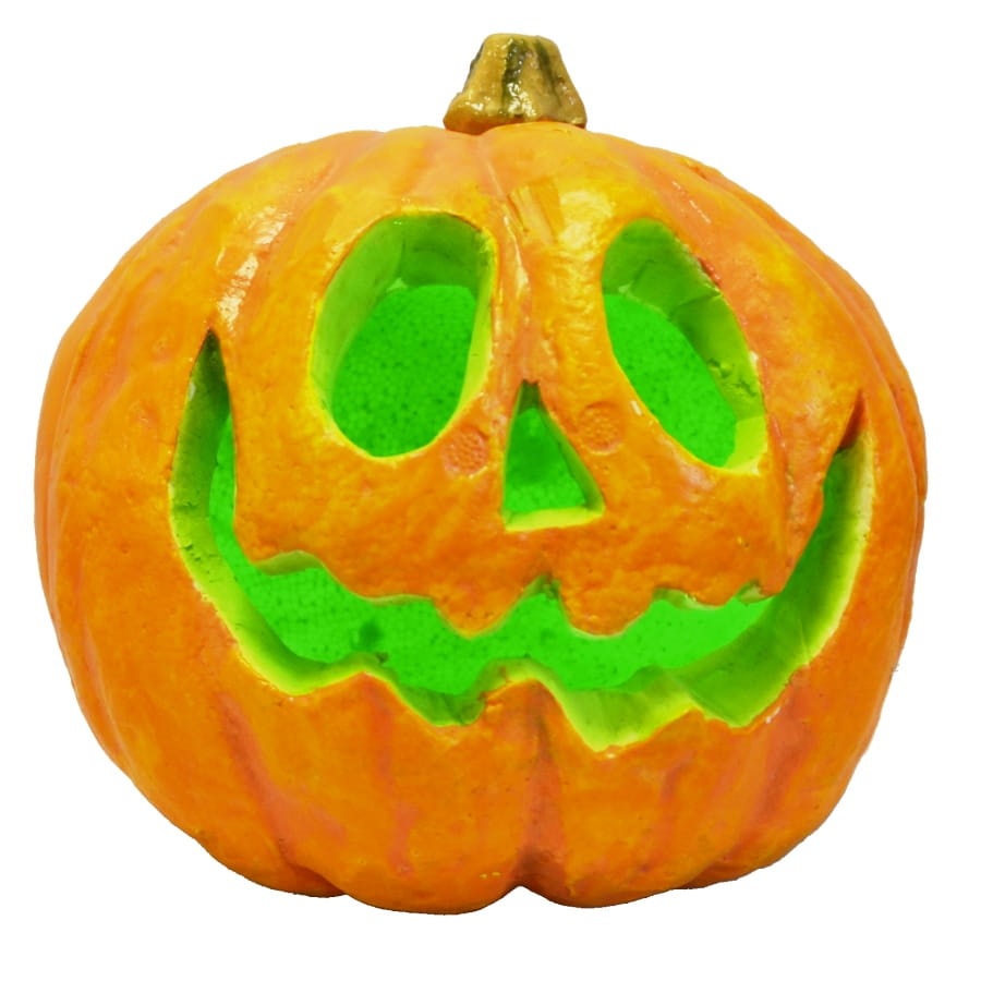Que du bonheur d'avoir une citrouille décorative à Halloween ! Cette fois-ci, vous n'aurez pas à la faire vous-même. Ce modèle est de couleur orange et présente les yeux, le nez et le grand sourire habituel des citrouilles d'Halloween. Il est assez particulier car il s'agit d'un article lumineux à lampe LED. Il affiche 3 couleurs changeantes et fonctionne avec trois piles qui vous seront livrées également.