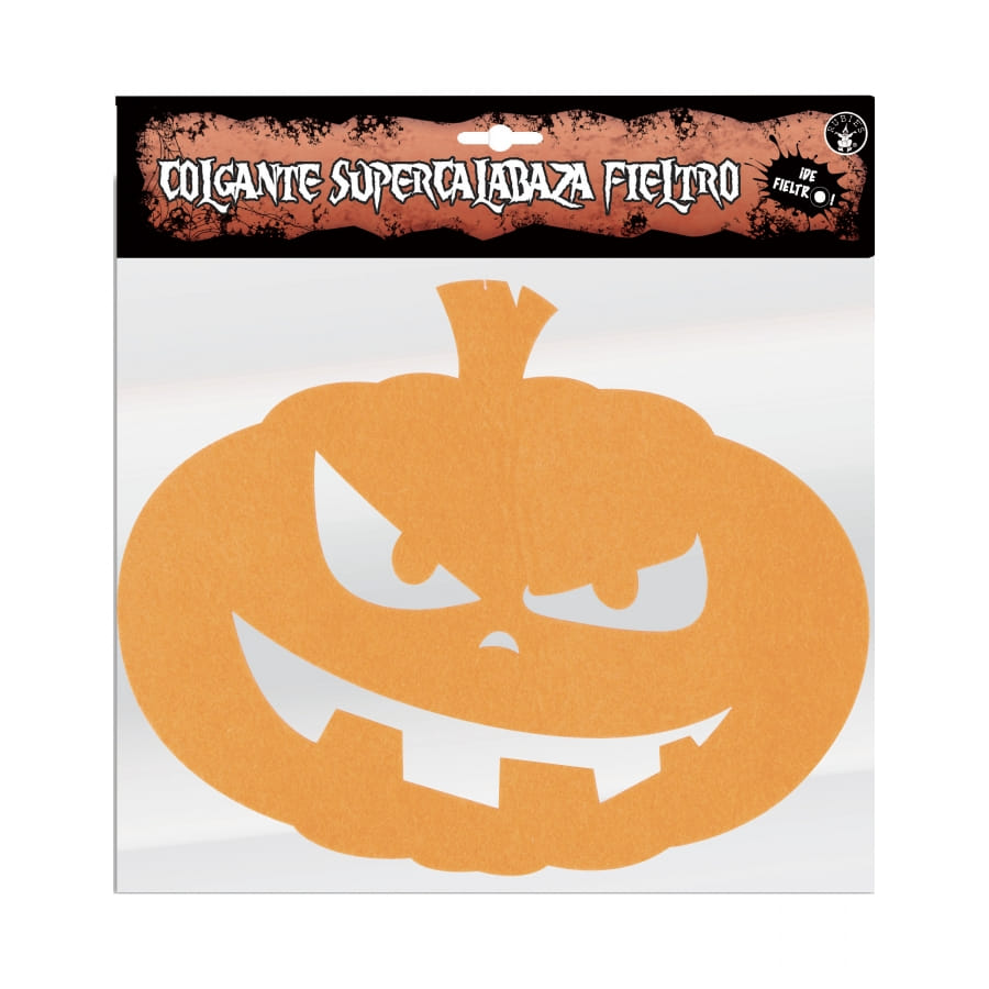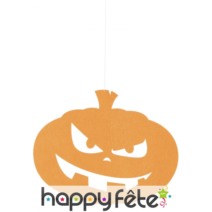 On reconnaît le fruit le plus célèbre d'Halloween grâce aux éléments du visage (yeux, nez et sourire édenté) découpés dans la feutrine utilisée pour sa fabrication.