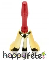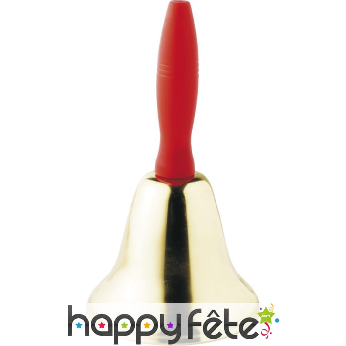 Cloche de Noël de couleur dorée avec manche rouge. Cet accessoire mesure 18 centimètres de haut. Posez-la bien en vue à l'occasion de Noël pour une atmosphère chaleureuse dans l'esprit de fête.