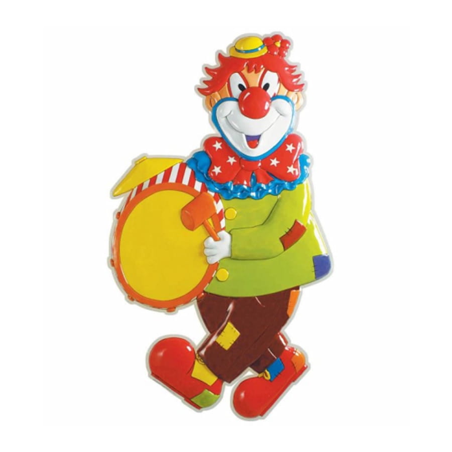 À l'occasion de l'anniversaire d'un enfant, pourquoi ne pas lui organiser une fête autour du thème du cirque ? Voici un produit décoratif que vos petits invités vont adorer. Il s'agit de l'article Clown décoratif en relief de 1m X 57cm constitué d'une silhouette 3D, fait en plastique et représentant un clown rieur de toutes les couleurs avec son tambour.