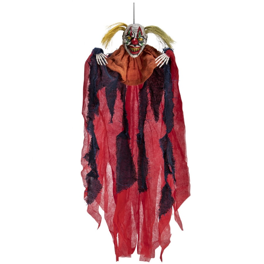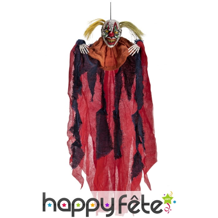 Le clown épouvantail rouge et noir effrayant mesure environ 65 cm de haut.