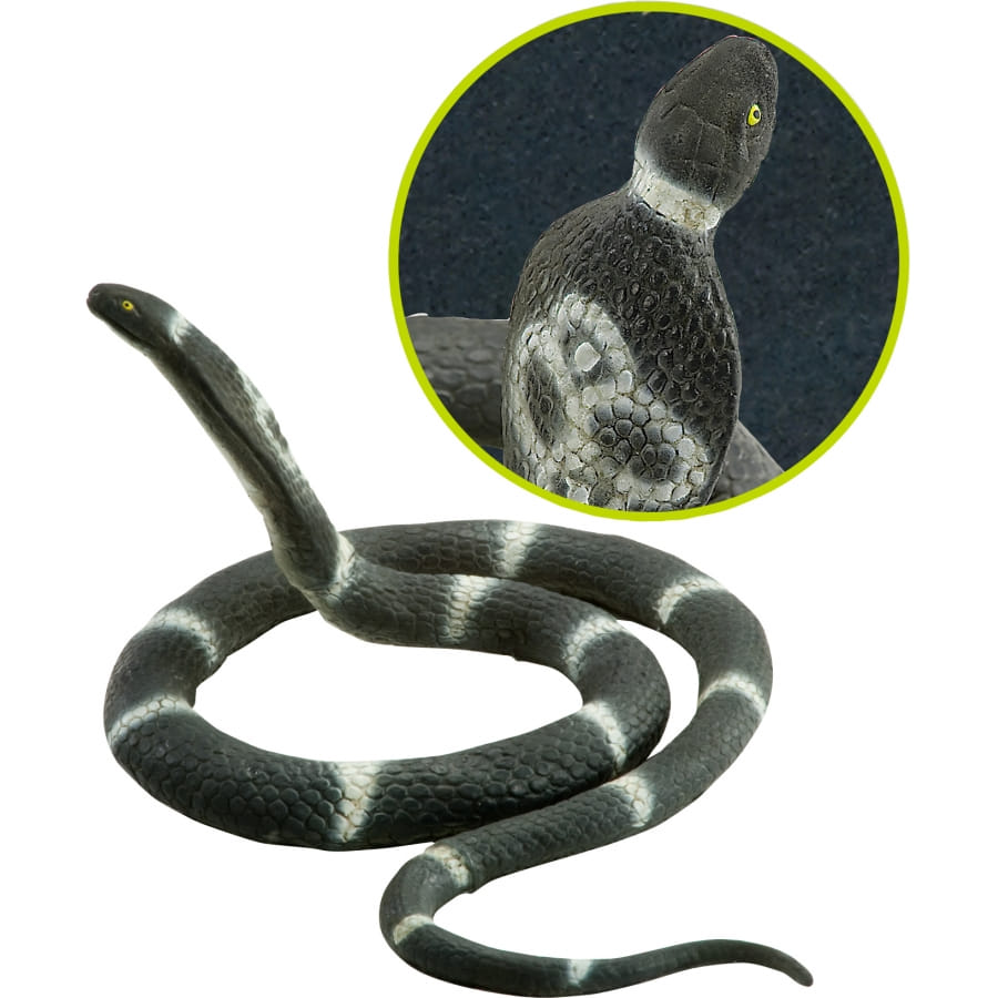 Cobra en plastique de couleur noir à rayures blanches. La taille de cet accessoire est de 170 cm. Il est parfait pour faire peur à vos invités lors d'une soirée d'Halloween.