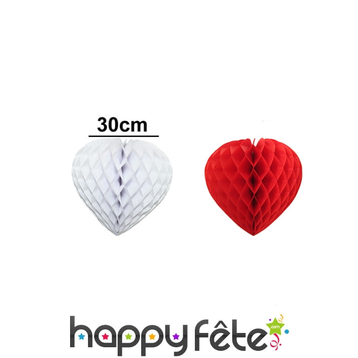 Nous vous proposons ce coeur à titre décoratif. Il mesure 30 cm et est fabriqué en papier alvéolé. Les couleurs disponibles sont le rouge, tout comme l'amour, ou le blanc, symbole de pureté, selon votre convenance. Pour rendre votre Saint Valentin ou votre mariage plus romantique et charmant, il faudra mettre en avant la décoration. Nous vous suggérons donc ce coeur alvéolé. Vous pouvez le mettre dans la salle de fête, ou juste dans une salle privée pour passer une fête en tête-à-tête en amoureux.
