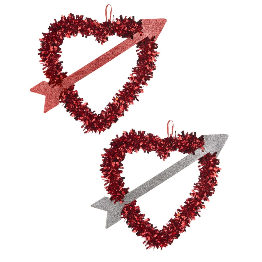 Une flèche pailletée traverse la guirlande et donne l'illusion d'un coeur transpercé par une flèche de cupidon.