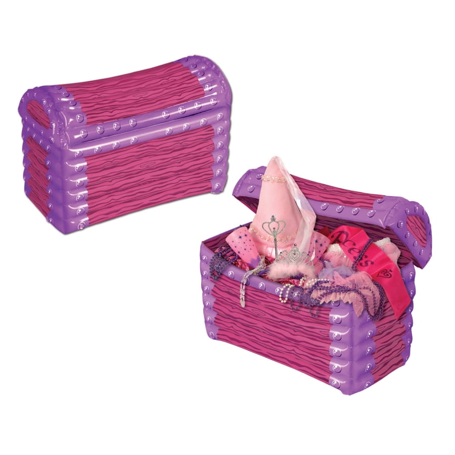 Votre petite princesse a besoin d'une boîte spéciale pour ranger ses effets personnels ! Elle sera comblée de découvrir ce coffre de princesse gonflable. Il est de couleur rose et violet, et il pourra contenir tous ses petits trésors comme les bijoux, les jouets, les souvenirs de vacances ou les cartes de voeux. Comme un véritable coffre à joyaux, elle le rangera précieusement dans sa chambre, là où personne ne le trouvera !