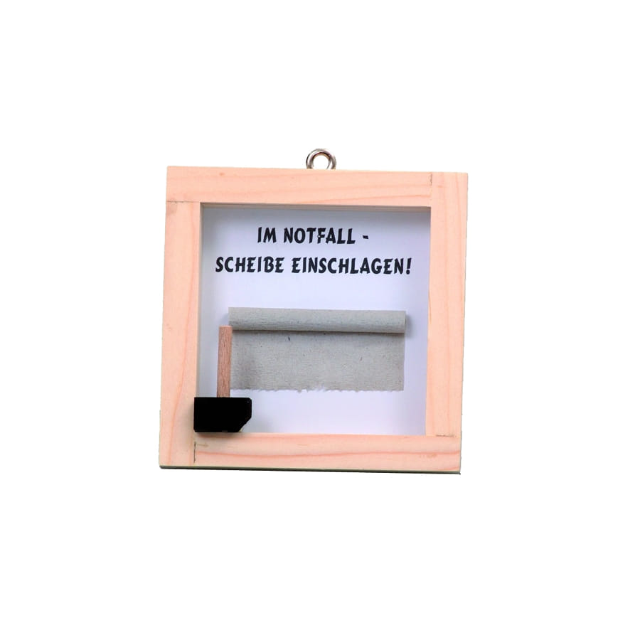 Des fois, on se retrouve à cours de papier toilette dans des moments très inopportuns. Pour pallier à cela, nous vous proposons ce coffret d'urgence, humoristique, avec papier toilette. Ce coffret a été fait avec un cadre en bois de couleur beige et est constitué d'un mini rouleau de papier toilette et d'un petit maillet pour casser la vitre lorsque cette situation se présentera. Farce idéale à offrir à vos proches, sourire assuré!