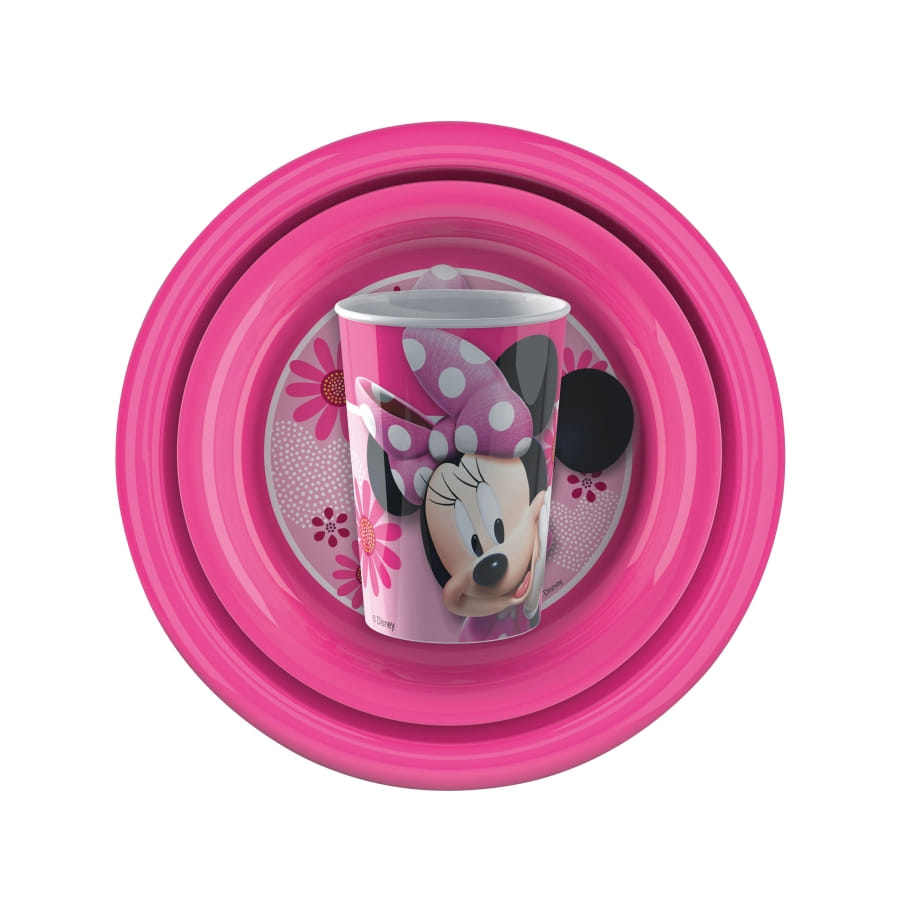 Chaque élément de ce coffret rose est décoré d'un imprimé de Minnie Mouse, la célèbre compagne de Mickey.