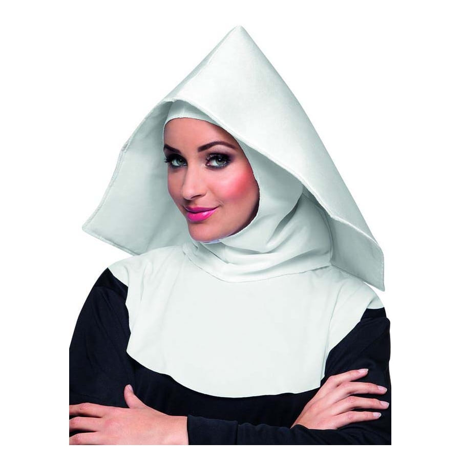 L'accessoire de déguisement est de couleur blanche et imite à la perfection la coiffe sortie tout droit d'un couvent.