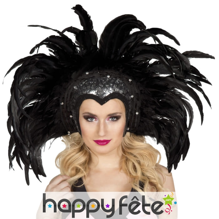 Lors du prochain carnaval, arpentez les rues avec cette magnifique coiffe brésilienne de plumes noires.