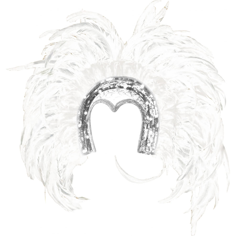 Coiffe de samba brésilienne pour femme composée d'une couronne argentée et d'une multitude de plumes blanches. Cette coiffe vous permettra de revivre avec passion et ferveur le festival de Rio!