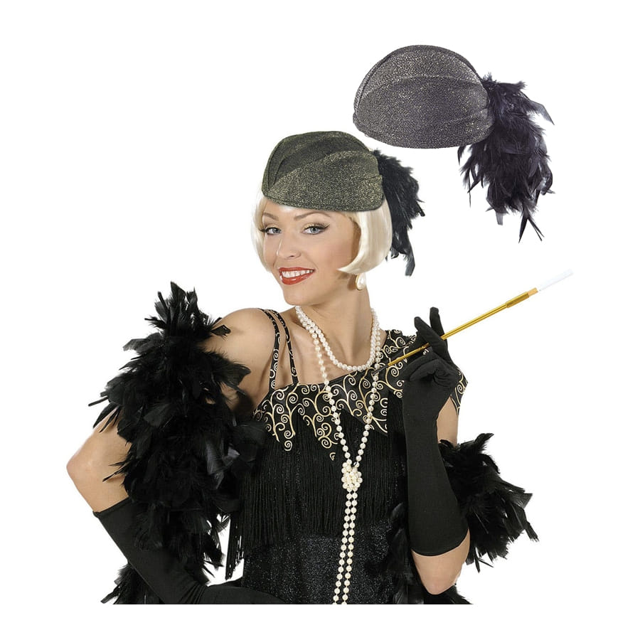 Place aux années folles maintenant avec cet accessoire des années 20. Les femmes aimaient particulièrement se faire belles lors de ces années-là. Elles étaient coquettes, ce que vous devez être lorsque vous allez vous déguiser en femme des années 20. Cette coiffe avec des paillettes et des plumes est un des accessoires que ces femmes-là auraient portés sans hésiter. Elle est de couleur dorée ou argentée comme sur la photo, et lors de la commande, vous n'aurez pas le choix de la couleur.