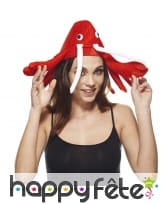 Cette coiffe pour adulte présente une couleur rouge et est prolongée de fausses oreilles blanches sur les côtés.