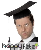 Son sommet en pointe retombe à l'arrière et une imitation de couronne de feuilles vertes décore la base du chapeau, pour rappeler le style du personnage de Dante Alighieri.